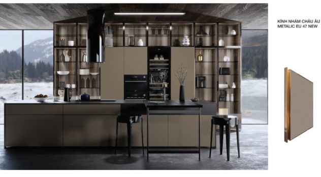 Tủ bếp kính nhám Châu Âu Metalic nhạt